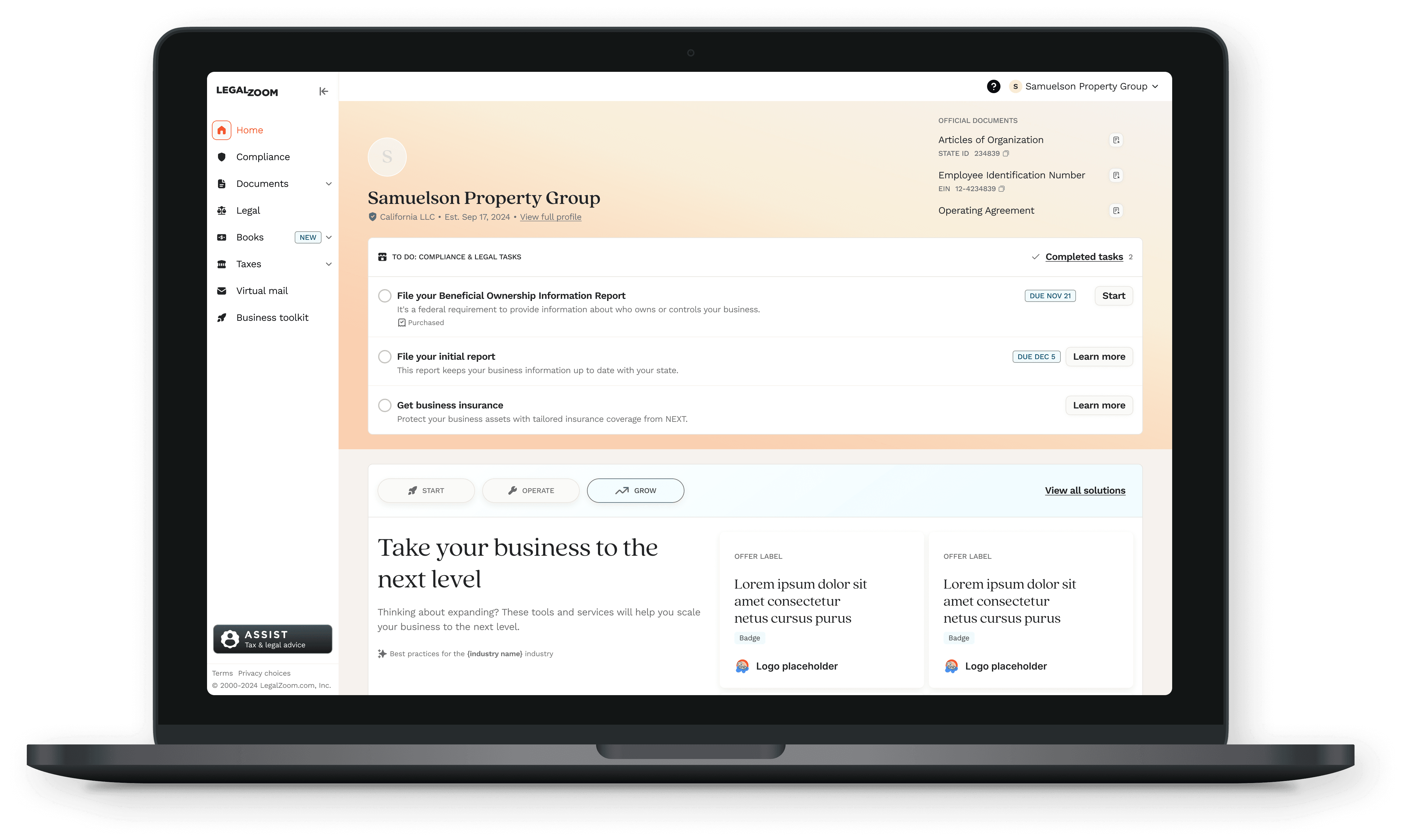 LegalZoom was shifting from a transactional formation service to an ongoing platform that supports SMBs throughout their business lifecycle. Newly formed LLC owners engaged heavily during formation but dropped off sharply afterward, leaving helpful tools, subscriptions, and partner offers undiscovered.